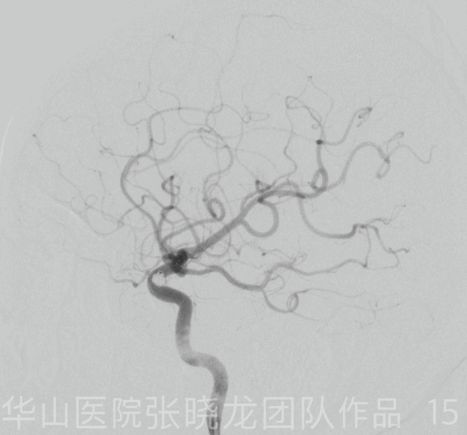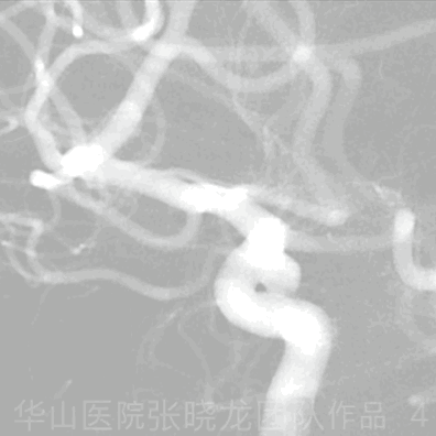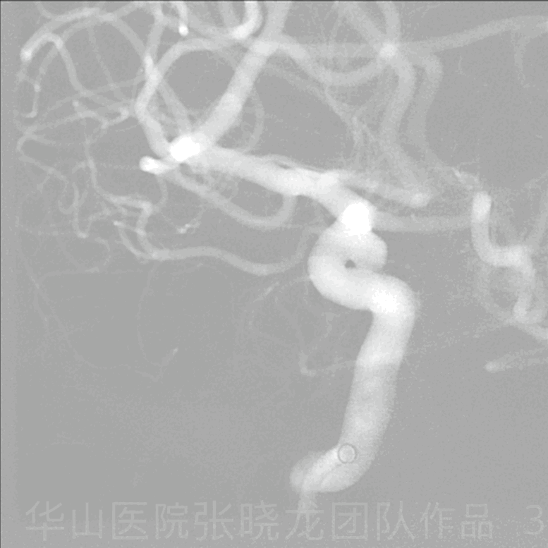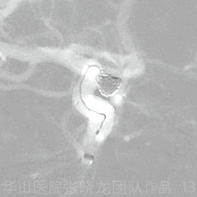 Figure 12 GIF. tuAngiography shows parent artery patent and intracranial vessels are intact. 图 12. 血管造影显示载瘤动脉通畅,颅内血管完整。