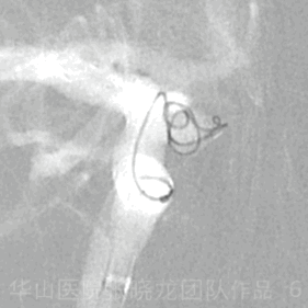 Figure 7 GIF. Target 360 ultra 2mm*4cm. Partial loops embolized the daughter sac. 图 7. Target 360 ultra 2mm*4cm弹簧圈。部分圈栓塞子囊。