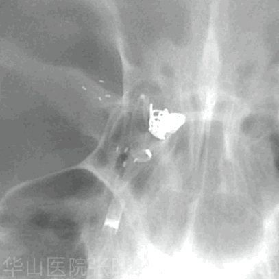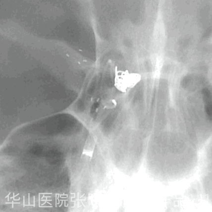 Figure 6 GIF. Target 360 ultra 4mm*6cm. Adjusting the framing to embolize the daughter sac with partial loops. 图 6. Target 360 ultra 4mm * 6cm弹簧圈。调整成篮,以部分圈栓塞子瘤。