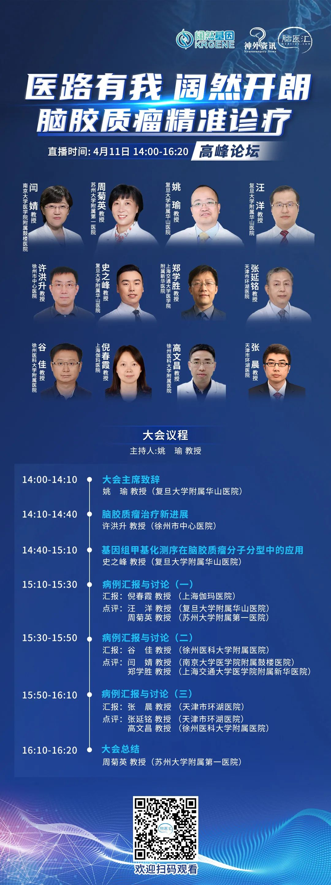 为了总结和归纳成人胶质瘤各分型、分期的临床特点,推动精准医学在脑肿瘤的治疗作用,进一步提高患者生存率,改善预后,助力新诊疗方案的推广,兹定于2021年4月11日举办“脑胶质瘤精准诊疗高峰论坛”,诚挚邀请您参与此次学术交流活动,并提出您宝贵的意见!