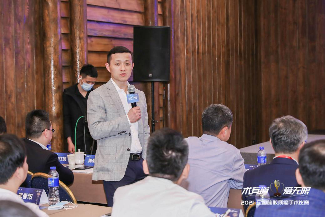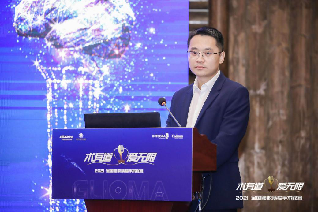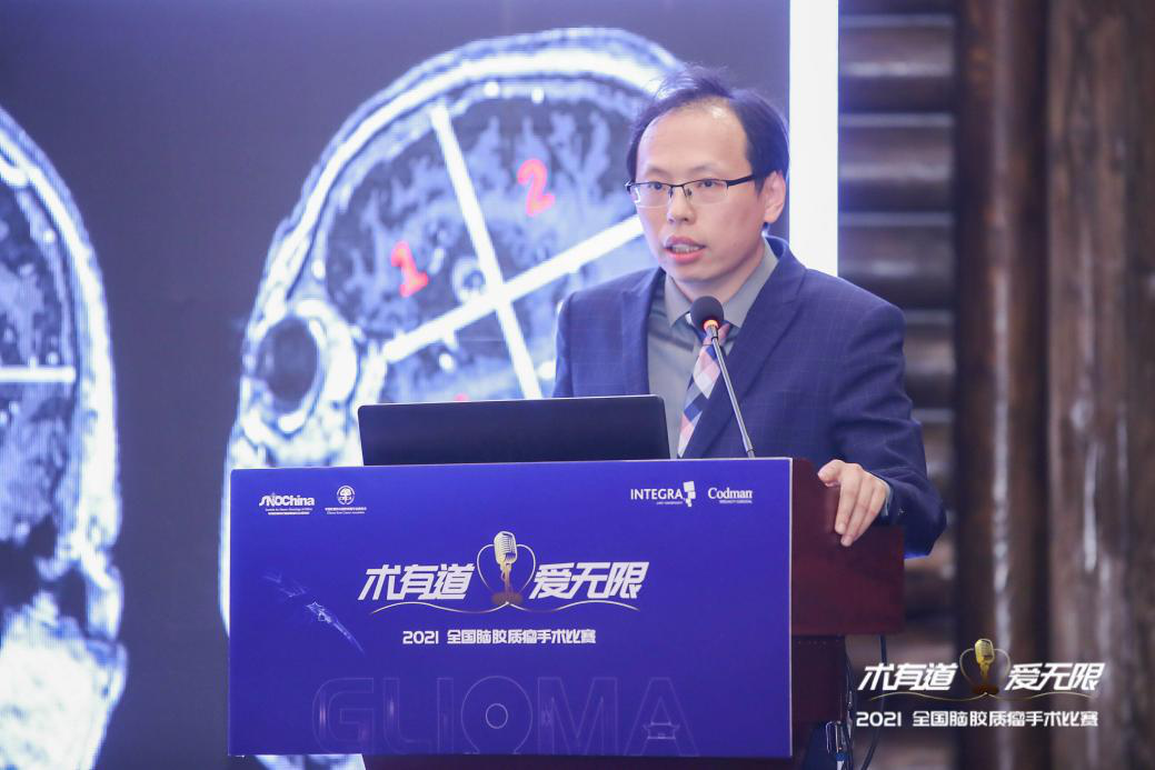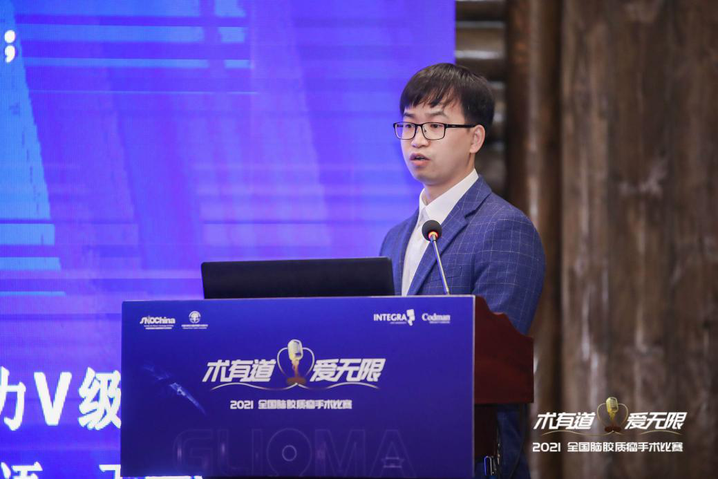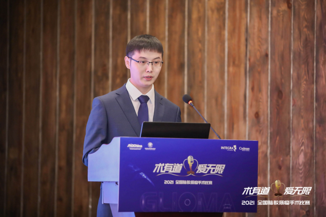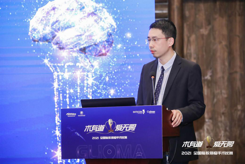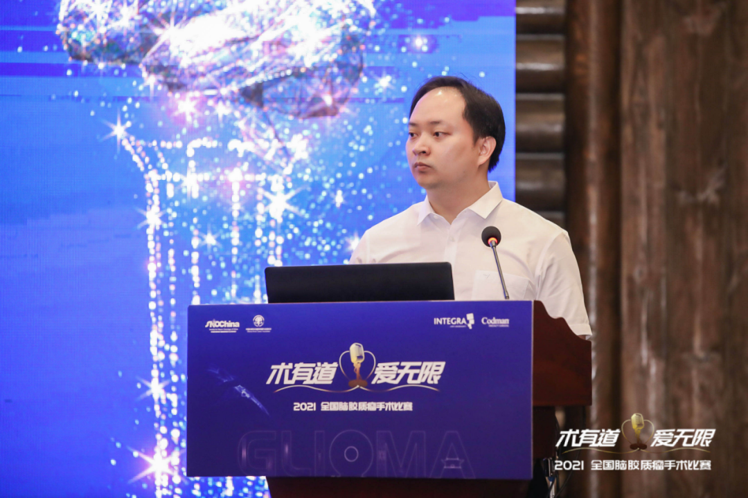 中国人民解放军南部战区总医院杨瑞鑫医师带来的是:Awake craniotomy resection of dominant Broca area glioma。借由这例病例的展示,杨医生带来了自己的思考,对于NMA的切除目前仍存在争议,通过结合适当的术中运动任务,考虑到神经可塑性,可能有助于判断NMA是否可以进行切除。而对于侧裂周围肿瘤的切除,血管的保护仍是重点。