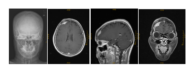 头颅X线没看到骨瘤,但头颅MRI发现右侧大脑额叶肿物