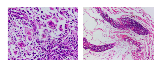 经病理分析,Z女士的头皮肿物符合慢性肉芽肿性炎。专家们面对病理结果,感到非常吃惊。这意味着梅毒不仅仅侵袭了患者的视神经,很有可能是神经梅毒的树胶肿型,也就是说患者的“脑肿瘤”并不是良性脑膜瘤,而是狡猾伪装、极其隐蔽的梅毒性树胶肿——一头“披着羊皮的狼”!