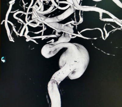 本例患者动脉瘤位于海绵窦段,眼动脉段血管同时存在一定扩张异常,患者无明显高血压病史,从出血角度而言该患者相对出血风险并非极高。但根据核磁情况,尽管该动脉瘤位于海绵窦段,但已经有一部分瘤体突入颅内,一旦发生破裂出血,有一定可能进入蛛网膜下腔。且患者近期出现头晕及单眼黑朦,考虑与血流瘀滞于动脉瘤内有关。核磁上同样也可以看到瘤壁大量的血栓沉积,未来发生脑梗死的风险较大。此外,家属与患者对疾病的恐惧与治疗的决心也是我们最终决定施行手术治疗的原因之一。