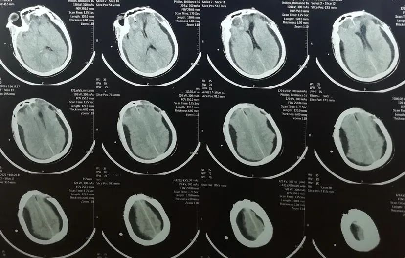 患者男性,48岁。2020年10月头部外伤,头颅CT显示双额叶脑挫裂伤,于当地医院行左额颞开颅血肿清除+去骨瓣减压术。