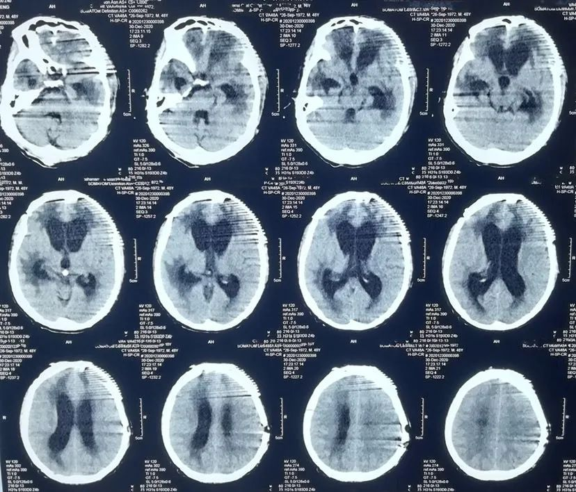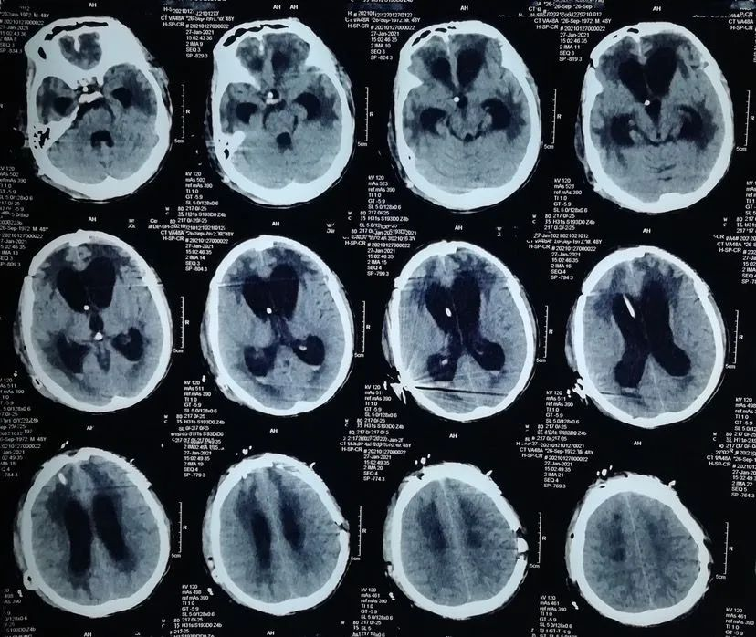 给予行左额颅骨成形术,术后双侧硬膜下积液消失,但出现脑积水,也就是脑外积水转为脑内积水。
