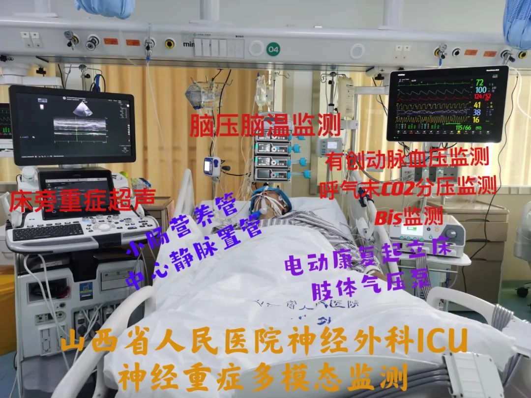 山西省人民医院神经外科位于院内科研临床楼12-17层,开放床位180张,重症监护室(NICU)设置床位48张(15、16层),监护室床位数居山西省神经外科之首,已配备床旁移动CT、血气分析仪、可视喉镜、PICCO血流动力学监测系统等;开展床旁脑电、脑氧、呼末CO2分压监测、脑电双频指数监测、颅内压监测、脑温监测、有创动脉血压监测、中心静脉压监测、床旁超声、床旁纤支镜、鼻空肠营养管等多模态神经重症器官功能监测与保护核心技术,同时拥有吞咽神经和肌肉电刺激仪、微电流刺激仪、综合感官刺激仪、经颅磁刺激仪、右正中神经刺激仪及康复直立床等多种早期促醒、康复仪器。颅脑创伤与神经重症团队正在继续提高临床专业能力、科学研究能力等,改善山西省颅脑创伤及神经危重症病人预后及生存质量。