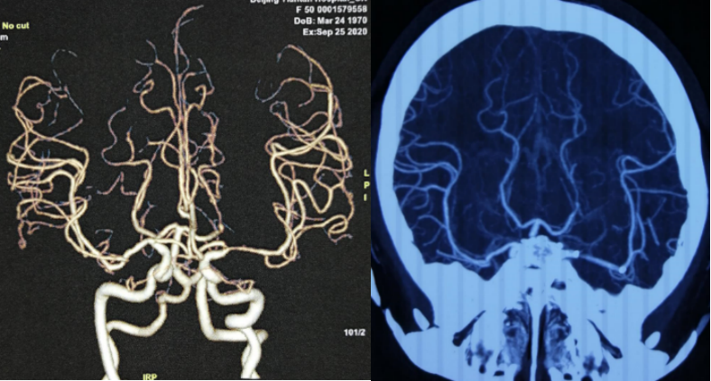 CTA示左侧大脑中动脉主干重度狭窄 2019.6天坛医院
