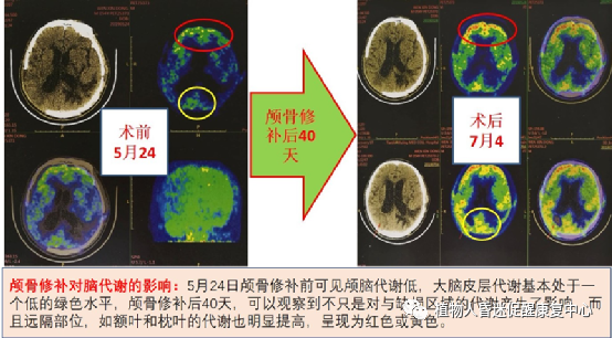 由此可见,颅骨修补是十分必要的,而不是不清醒就不修补,来我们促醒中心有一部分患者行颅骨修补后,意识逐渐好转,清醒。可见颅骨修补并不是补好缺损的那块骨头那么简单,而是会影响大脑的血流和代谢,进而影响整体的意识。