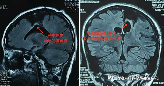 图1:有损伤就有萎缩,即使没有昏迷,上图中局部的脑损伤后期都会导致脑室的一侧扩大。这是我们不能改变的现实。