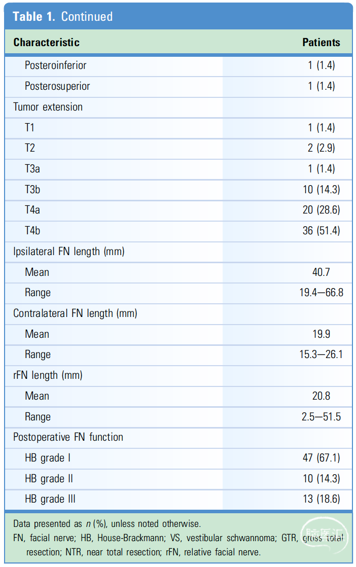 FN功能:术后第8天根据House-Brackmann(HB)评估FN功能。