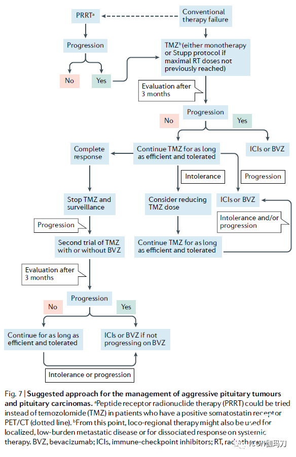 图7.对进袭性垂体瘤和垂体癌建议的治疗方法。