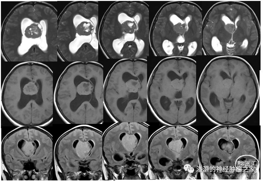 中枢神经细胞瘤多位于侧脑室内,起源于透明隔或丘脑部位。瘤体多稀软,富血供,大部分仅起源于局部的脑室壁,因此在手术时,需要注意保护周边正常的脑室壁结构,尤其是丘脑侧、室间孔周边、穹隆以及深部静脉系统。
