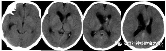 术后6天复查头颅CT观察脑室情况,基本同术前,无明显脑积水出现。
