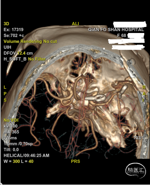 详细告知家属两种手术方案的风险及花费,家属决定行开颅夹闭手术,由神经内科转入我科。