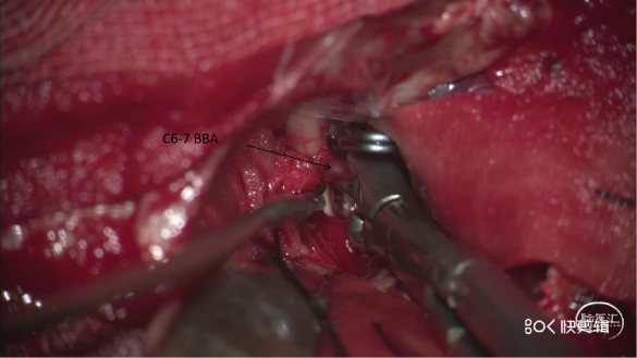 开颅手术:责任动脉瘤位于C6末端,前方有放置临时阻断夹空间,可行翼点入路夹闭。根据瘤颈情况决定是直接或包裹夹闭,先处理责任动脉瘤再夹闭大脑中动脉瘤。