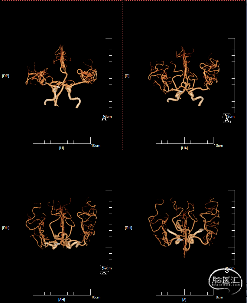 2.开颅手术有直接或包裹夹闭、血管缝合、闭塞后搭桥等方案,介入治疗一般采取多支架置入辅助栓塞、willis覆膜支架腔内隔绝等。BBA易发生术中再破裂出血和术后复发,治疗风险较高。开颅手术可能只有1次夹闭机会,调整瘤夹可能导致BBA破裂。介入治疗的患者,需早期行DSA复查,以明确有无复发。