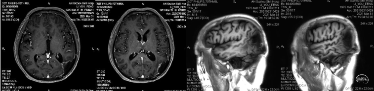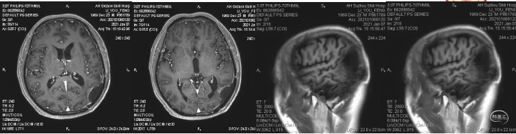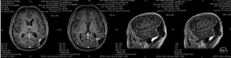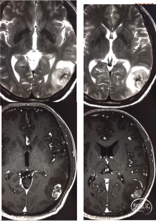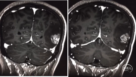 患者为中年男性,因“间断性头痛2月,加重1周”于2020年4月30日入院。入院时神经系统体征(-)。术前诊断为左顶枕叶胶质瘤。