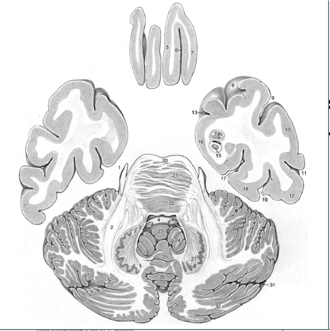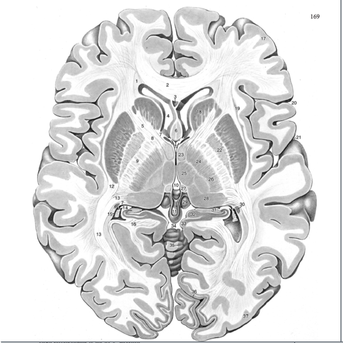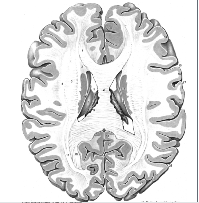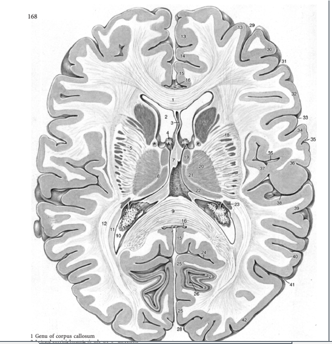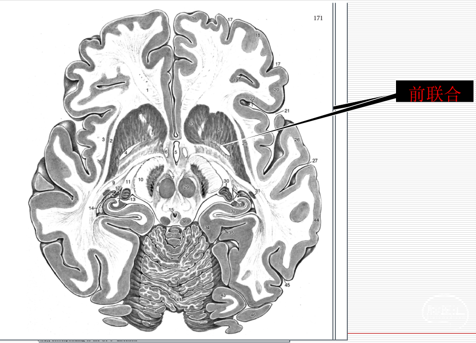 胼胝体、内囊、放射冠、额底间的水平联系纤维,颞叶内侧结构