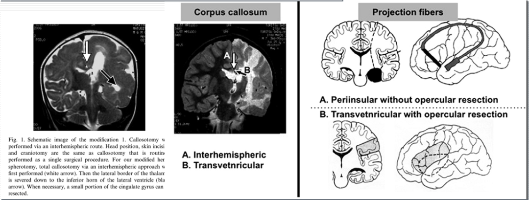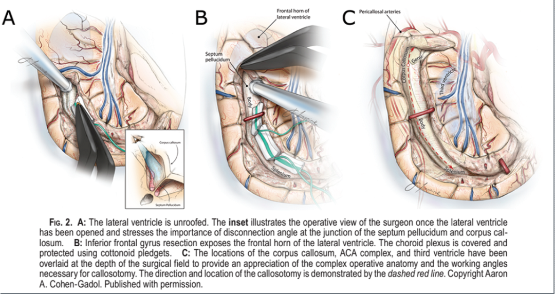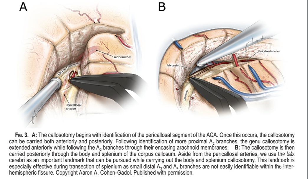 The goal - interruption of the corpus callosum, the internal capsule and corona radiata, and the mesial temporal structures as well as the frontal horizontal fibers.
