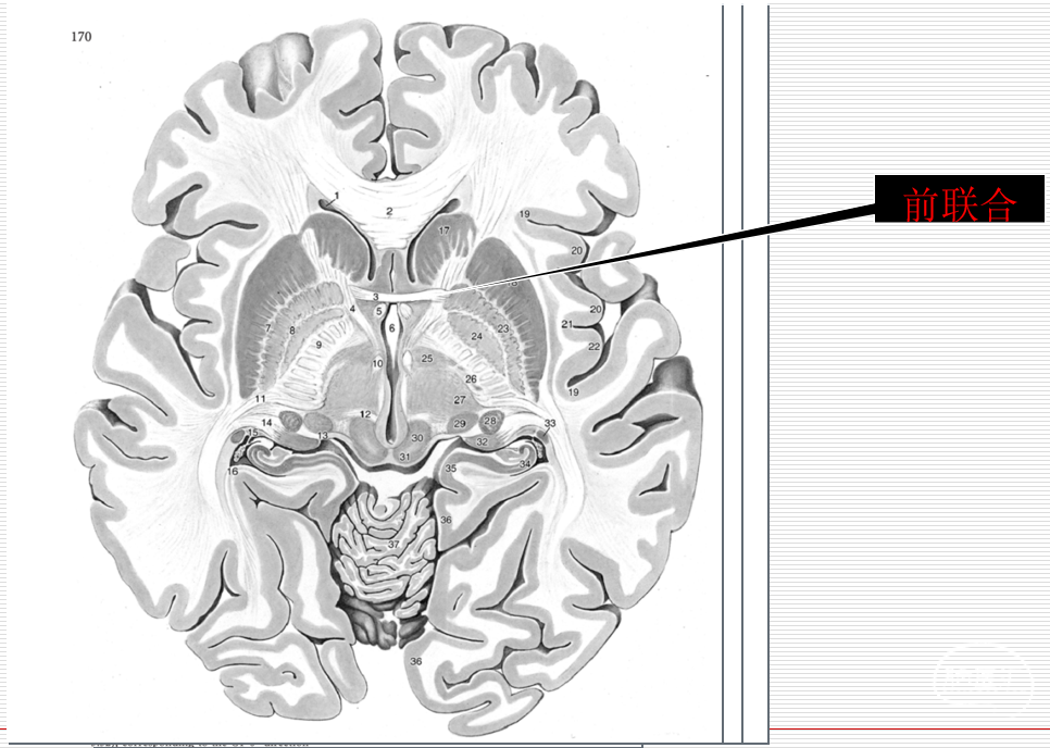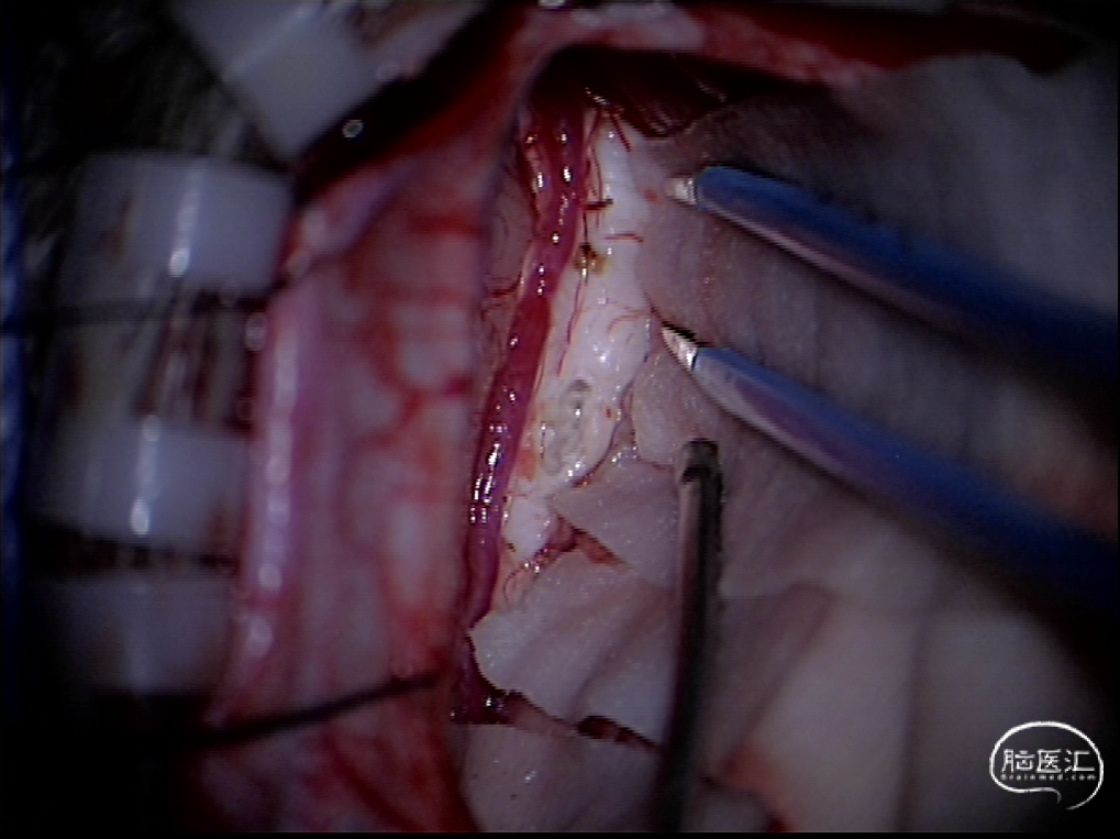 垂直入路中基底节切开的前段内移、并终止于室间孔前缘,深度至见视交叉、视束、A1,可以保证前联合、杏仁核的切开离断,又不需开放三脑室。