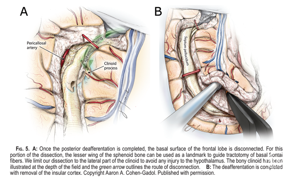 The aim - remove as little brain as possible by only disconnecting the hemisphere without creating a cavity.