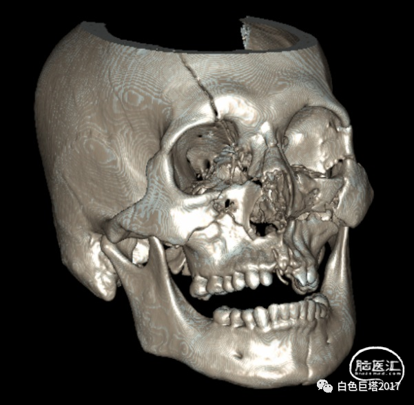 患者苏某,34岁男性,因“高处坠落致意识障碍1小时余”入院。患者自8米高处坠落,头面部着地,入院时头面创口、口腔、鼻腔流血不止,GCS E2V1M5为8分。很快出现血压下降至70/52mmHg、血氧下降85%。急诊气管插管,完善头颅、颈椎、胸腹部CT检查,提示颌面、颅底多发骨折、鼻腔积血,软组织挫裂伤,左颞颌关节脱位,牙齿缺失。额骨骨折、右额顶叶脑挫裂伤、蛛网膜下腔出血,颅内积气。颈椎间盘突出、颈椎退行性变、未见明显骨折。双侧1-2肋骨骨折,T5-7左侧横突骨折;双肺挫伤;左侧少量气胸。腹腔脏器未见明显损伤表现。