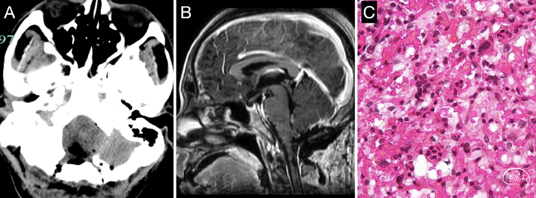 血管母细胞瘤(Hemangioblastoma)是一种起源于中胚叶细胞胚胎残余组织的良性肿瘤,占所有颅内肿瘤1.5-2.5%,占后颅窝肿瘤7-8%。血管母细胞瘤具有遗传倾向,但大部分为散发性,近1/3左右为von Hippel-Lindau(VHL)氏病的表现。发病年龄高峰为30-40岁,男性多于女性[1]。