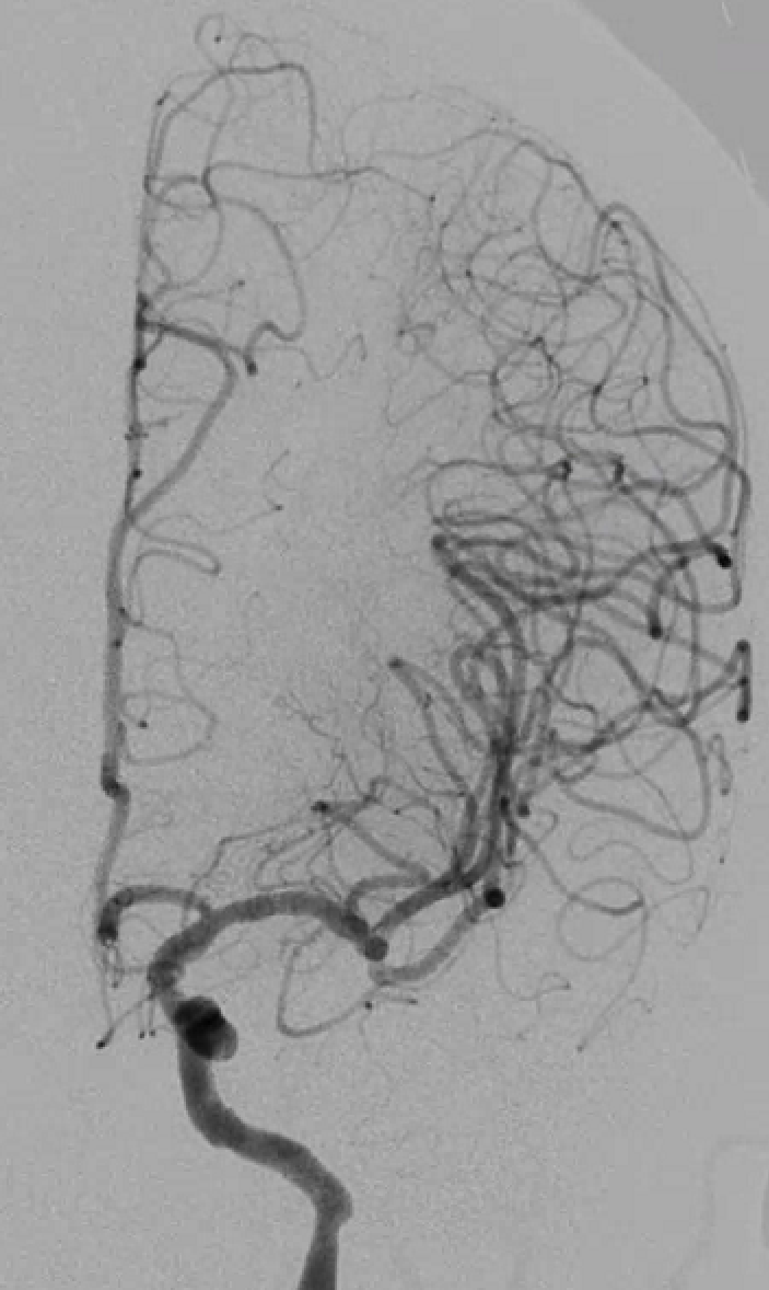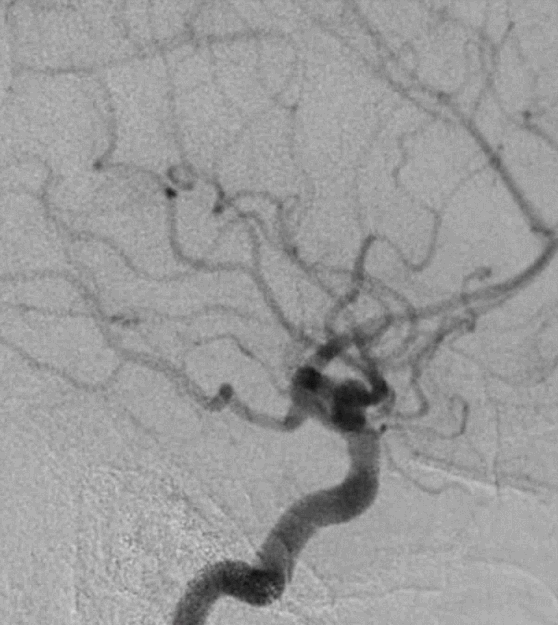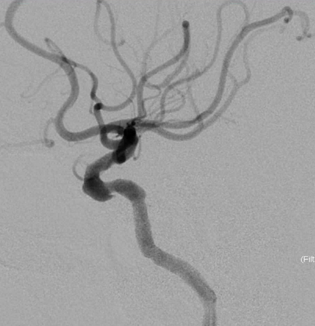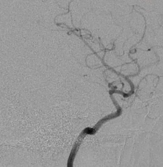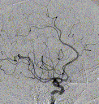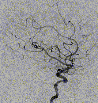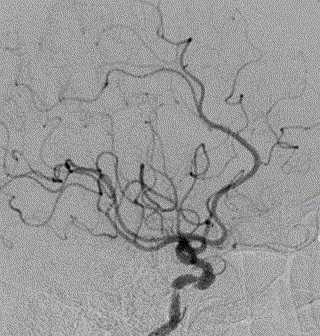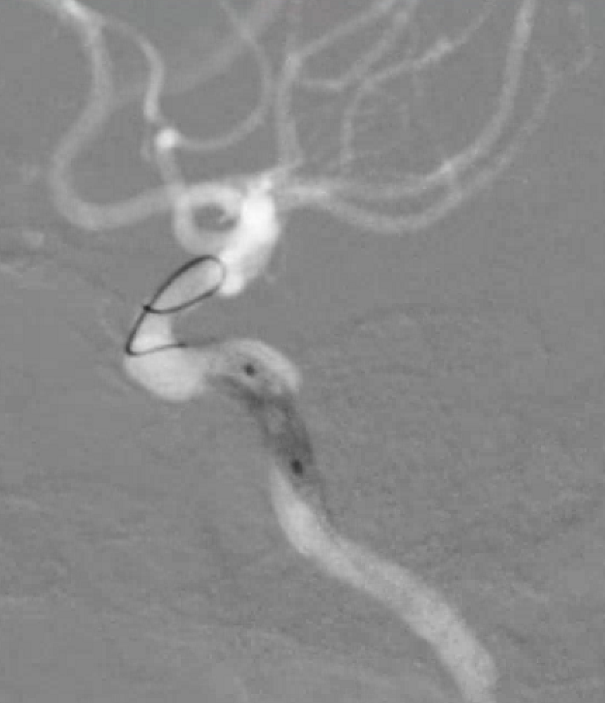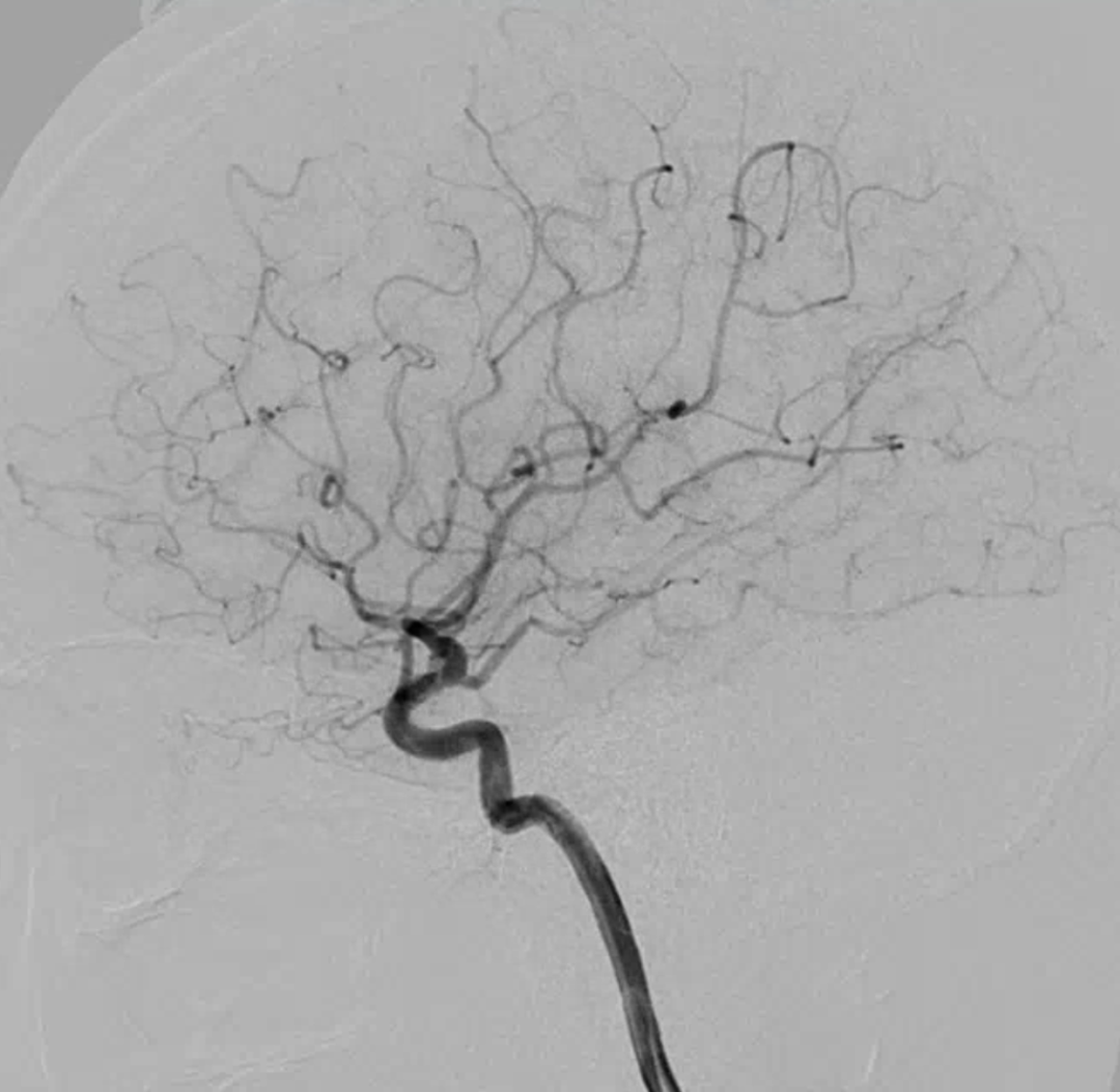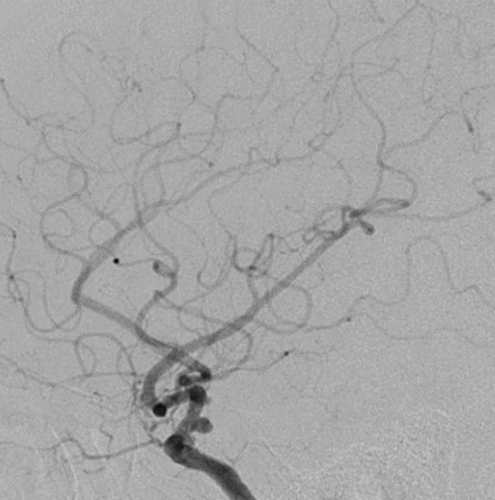 脑血管造影提示右侧颈内动脉颅内段多发动脉瘤