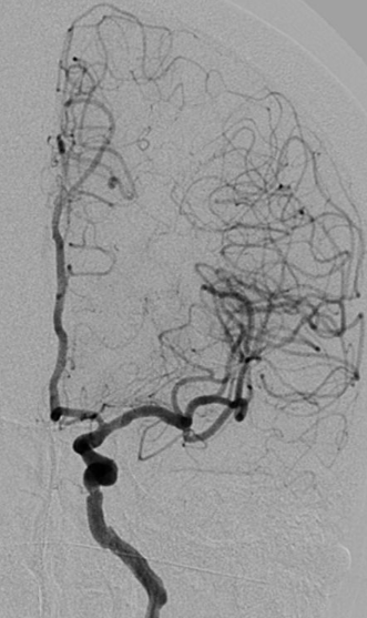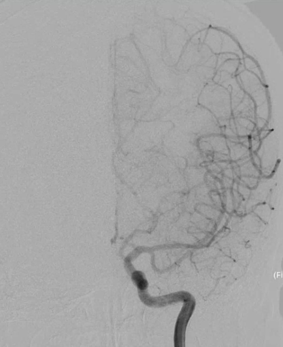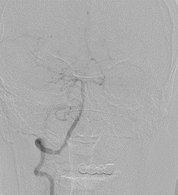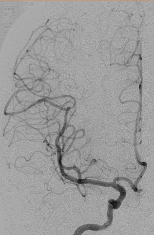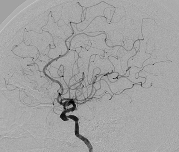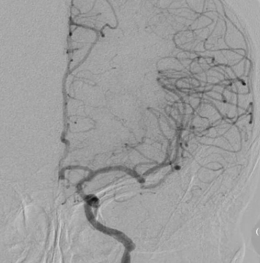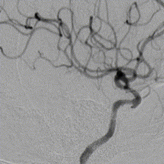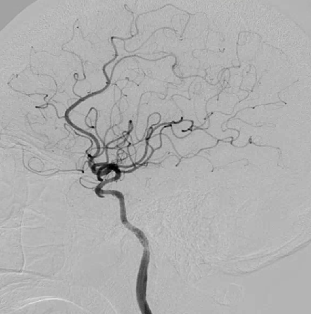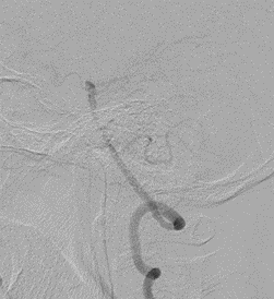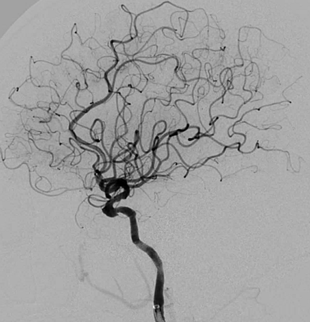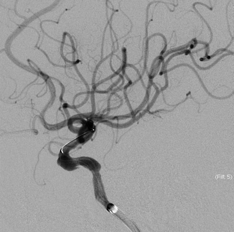 脑血管造影提示右侧颈内动脉颅内段多发动脉瘤
