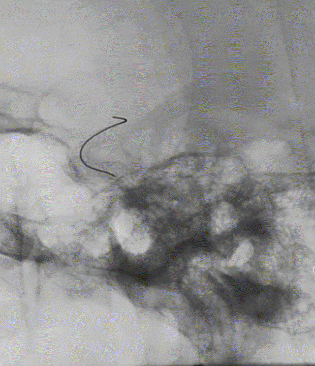 术后3月复查,瘤体未见显影,载瘤动脉通畅