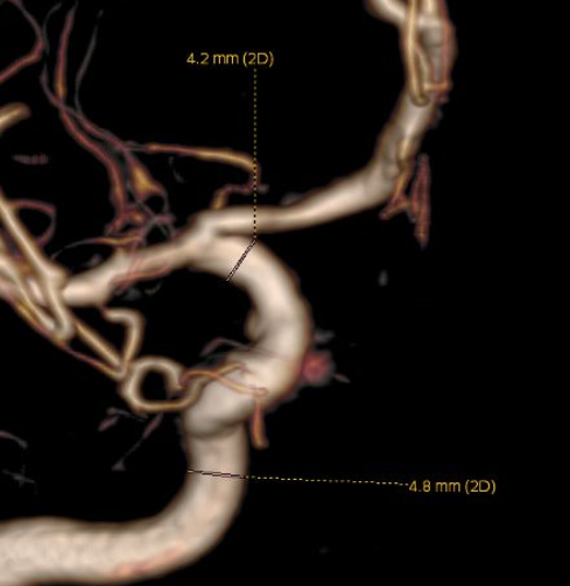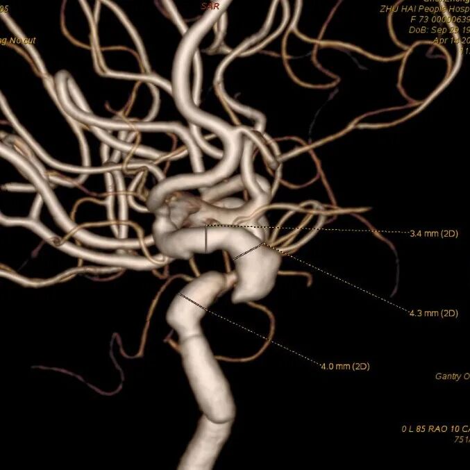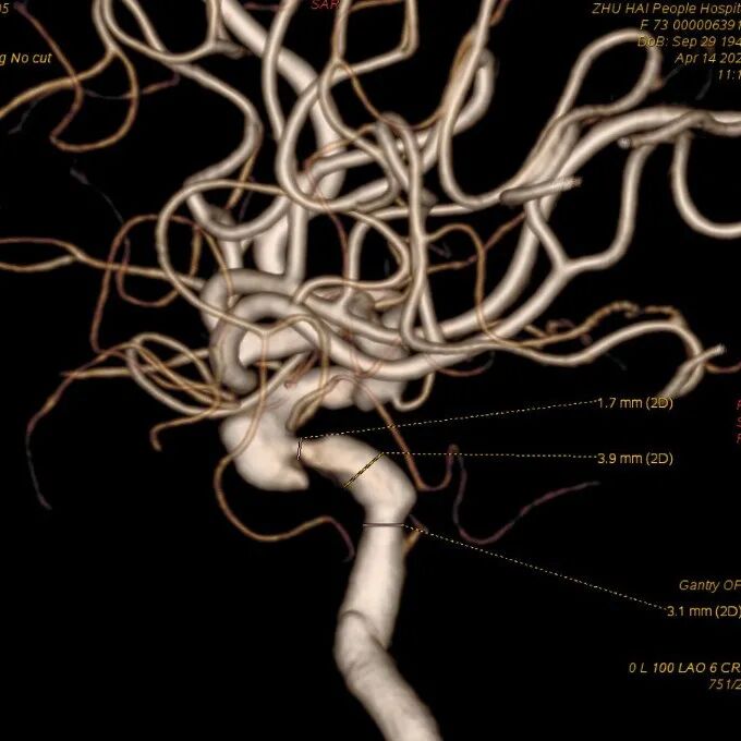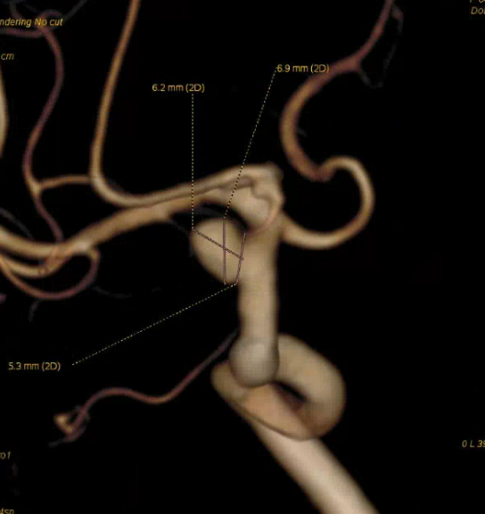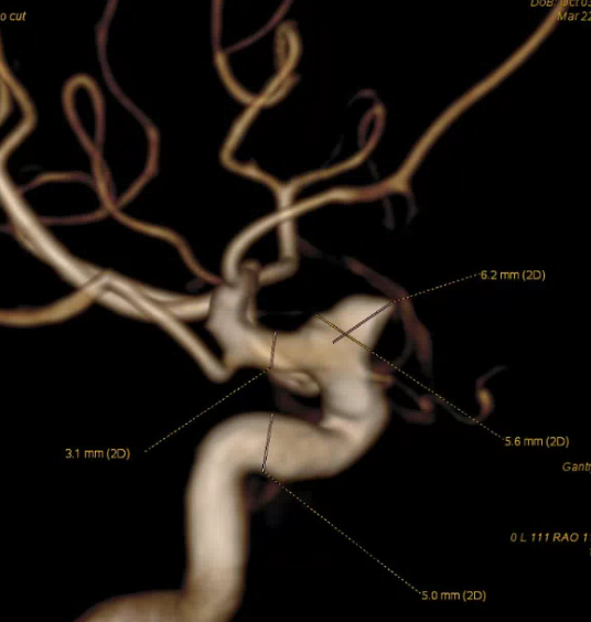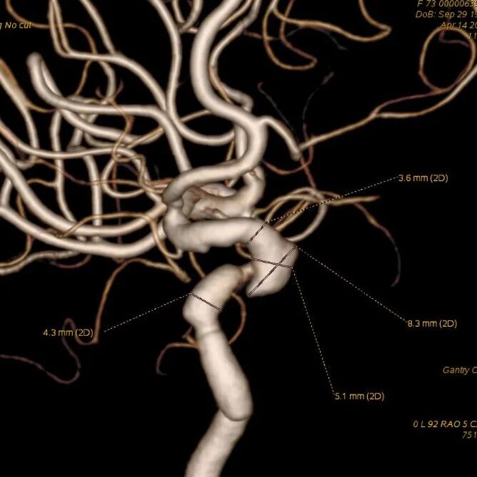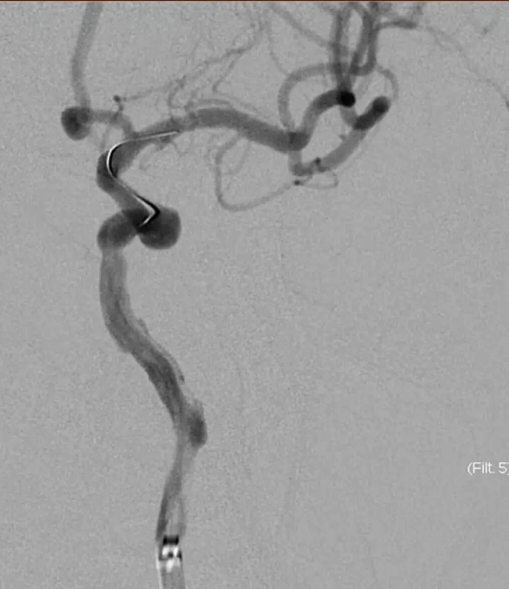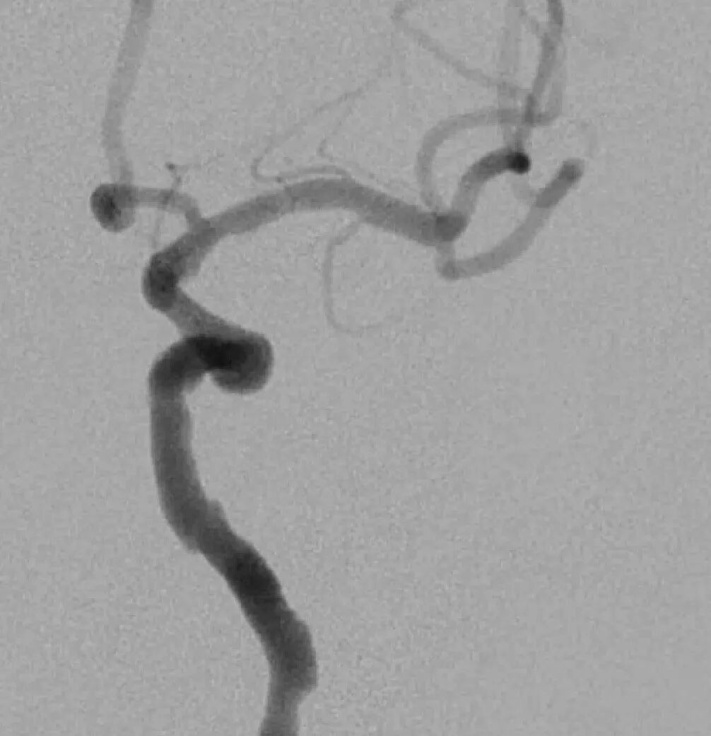 1. 患者双侧颈内动脉多发瘤样扩张及狭窄,其中左侧为甚,破裂出血及出现缺血事件风险较高