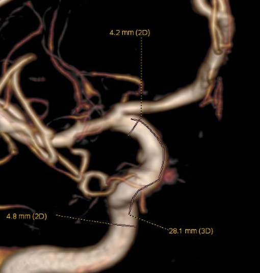 左侧颈内动脉重建(左侧狭窄及扩张较右侧更甚)