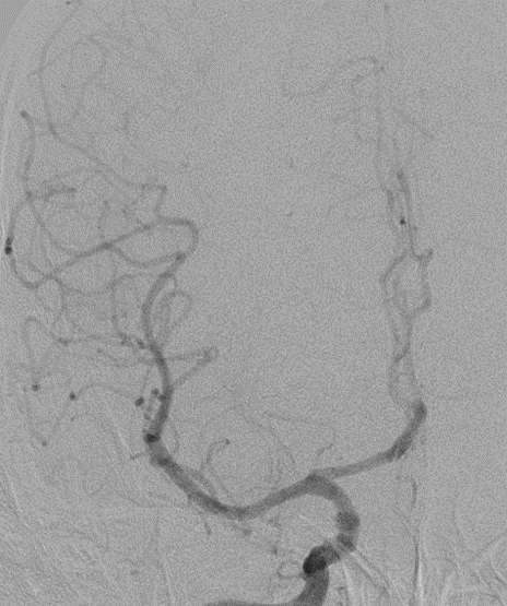 术后4月余随访:多发动脉瘤均未见显影,远端残余轻度狭窄