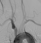 脑血管造影提示右侧颈内动脉颅内段多发动脉瘤(反主动脉弓)