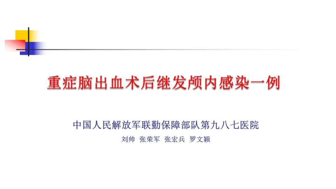 今天为大家分享的是《监测有道丨颅脑创伤-神经重症周刊》第249期,由中国人民解放军联勤保障部队第九八七医院神经外科张荣军主任团队带来的:重症脑出血术后继发颅内感染一例,欢迎观看、阅读。