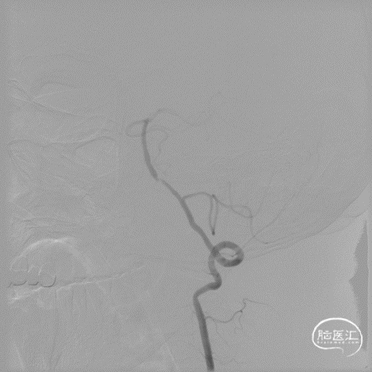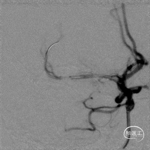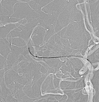 最后工作位造影和正侧位造影,右侧大脑中动脉区域血流恢复,灌注满意。