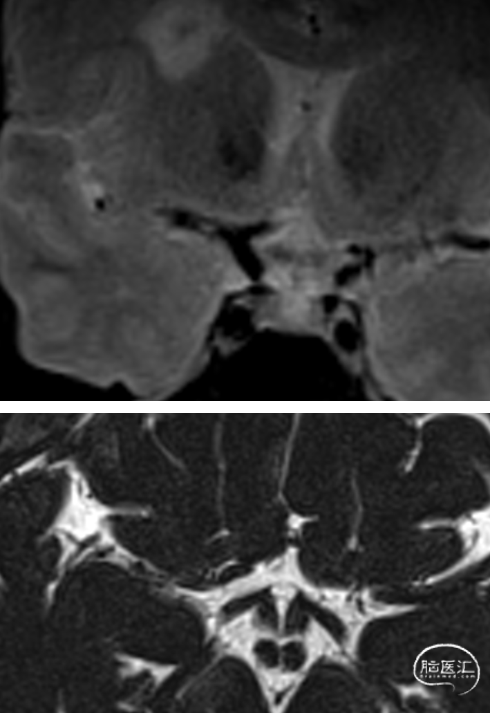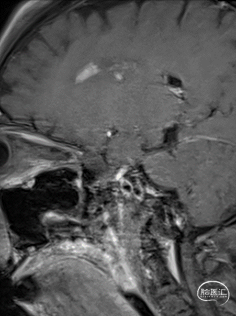 术前行高分辨率核磁共振:右侧大脑中动脉前壁强化斑块。