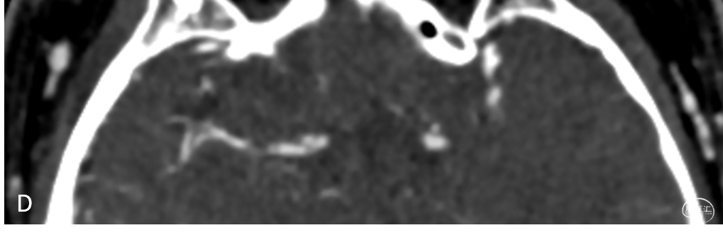 头颅CTA提示:右侧大脑中动脉M1段闭塞;左侧椎动脉V4段重度狭窄(C、D)