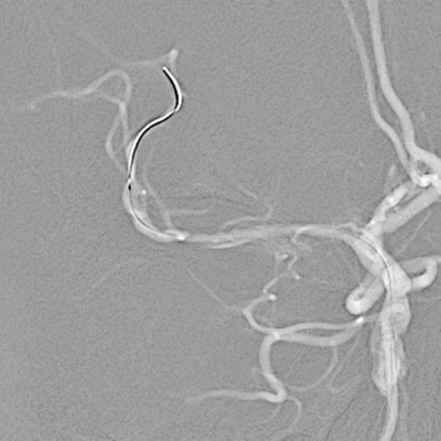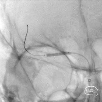 4. 全麻下行右侧大脑中动脉闭塞开通血管成形术,恢复右侧大脑中动脉区域血流灌注,予以球囊扩张必要时支架置入。