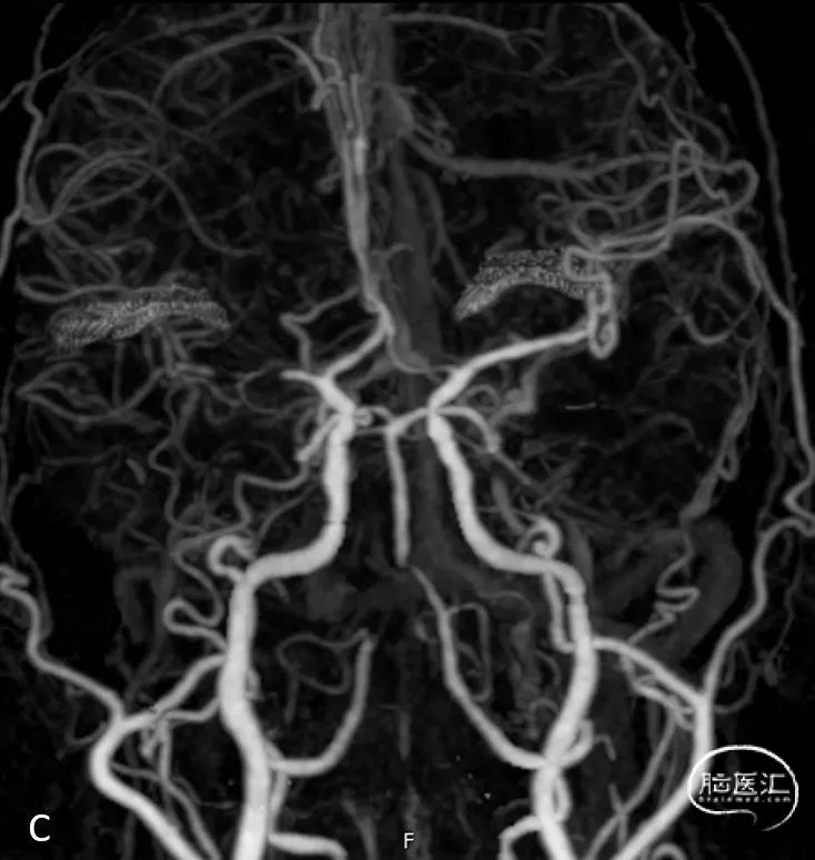 1. 中年男性,右侧大脑中动脉供血区脑梗死,规范内科治疗仍病情不稳定,反复发作。