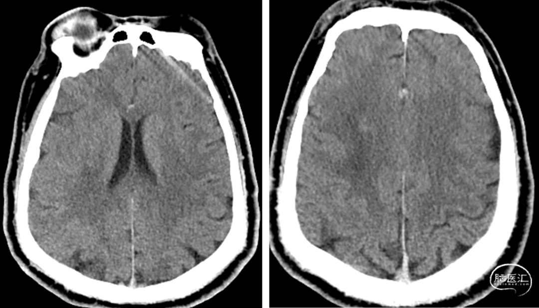 2. 头MRI示右侧半卵圆区新发脑梗死,右侧大脑中动脉M1段闭塞;代偿不佳,CTP示右侧大脑半球低灌注;高分辨率核磁共振:右侧大脑中动脉前壁强化斑块。
