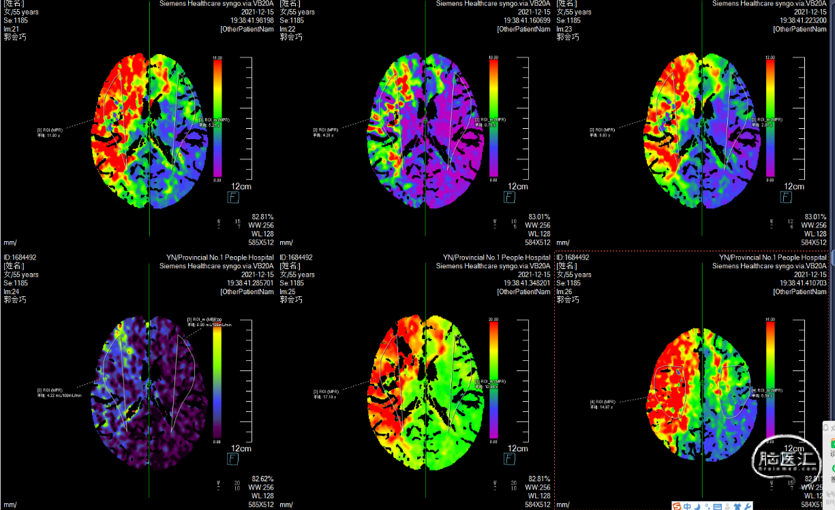 简要病史:患者于2021年12月15日16时乘车时呕吐1次,随后发现不能言语,左侧肢体无力,伴口角歪斜,送至我院急诊科就诊急诊查头CT未见颅内出血,于19:13予阿替普酶0.9mg/kg静脉溶栓治疗,头颈CTA提示右侧颈内动脉颅内段管腔重度狭窄,右侧大脑半球低灌注表现。