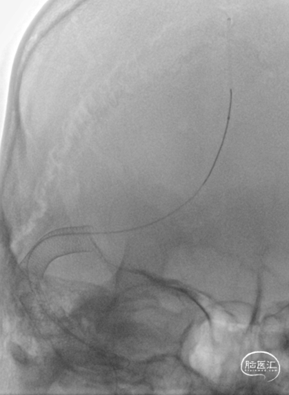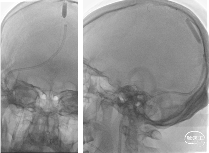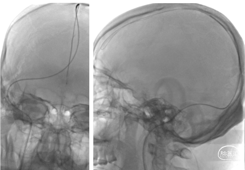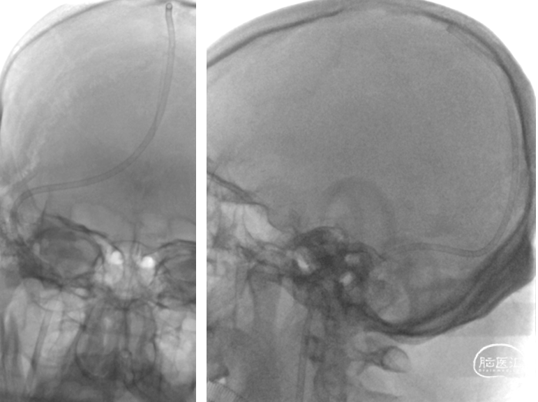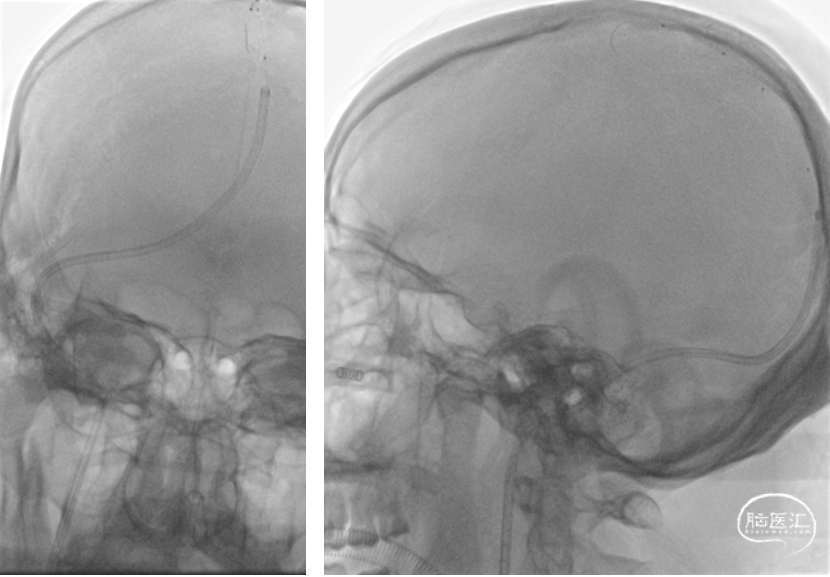 于1月6日在局麻下行全脑血管造影+颅内静脉窦置管溶栓术,术后留置股静脉鞘,给予尿激酶鞘内滴注,患者症状无明显好转。