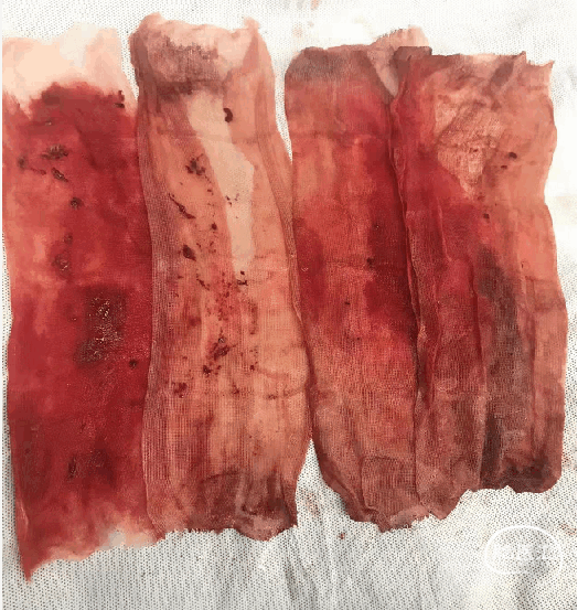 以8FGuiding反复负压抽吸,可见抽出大量暗红色血栓