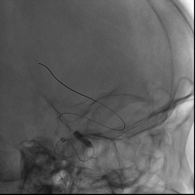 6F 115cm SKATHI远端通路导管与6F NeuronMax长鞘同轴,在泥鳅导丝引导下将SKATHI远端通路导管送至左侧颈内动脉海绵窦段。
