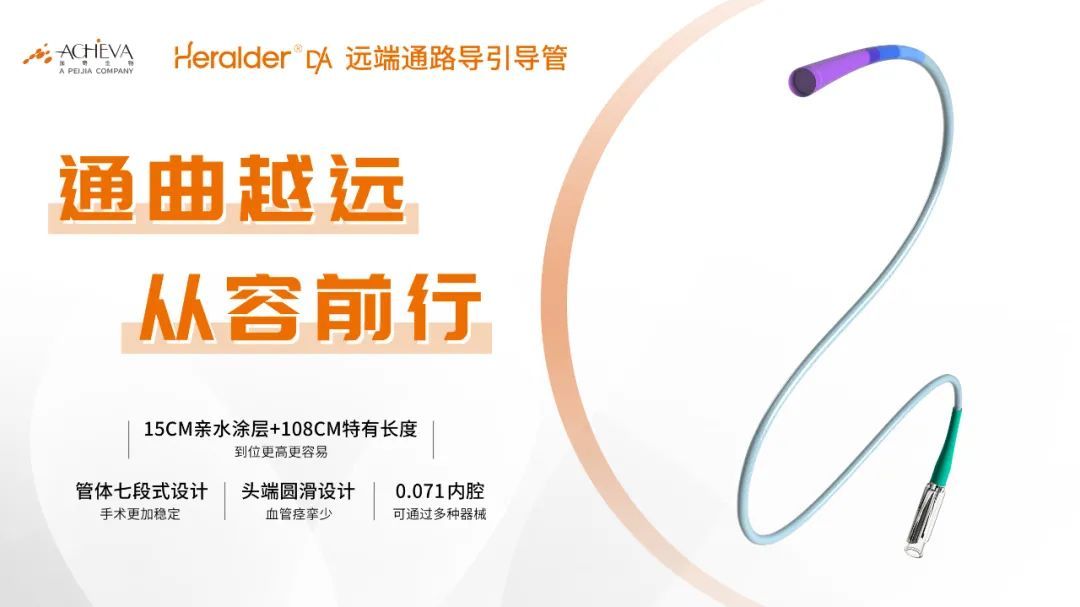 Heralder®DA远端通路导引导管作为一款优秀的国产导引导管,采用分段式设计,使得近端强支撑,远端可以高到位,手术系统更稳定,系统移位少;头端柔软,便于输送,兼顾了导管操控性能和抗折性能。同时有比较大的0.071内腔,可以容纳多种手术器械的顺利通过。