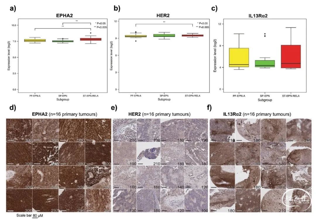 EPHA2、HER2、IL-13 Rα2在A型后颅窝室管膜肿瘤的表达水平