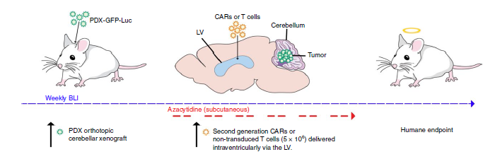 CAR-T侧脑室注射联合氮杂胞苷联合治疗III型髓母细胞瘤和PFA室管膜肿瘤策略