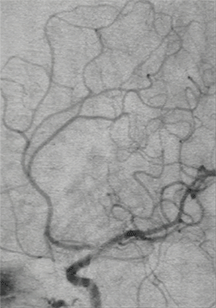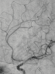 术后造影显示动脉瘤致密栓塞,不再显影;其它各分支血管通畅。
